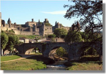Carcassonne is a medieval fortified city with a long history. It is a European tourist destination, but not very well known to North Americans. It is in the extreme South of France, about 50 miles from the Spanish border and 35 miles from the Mediterranean coast.